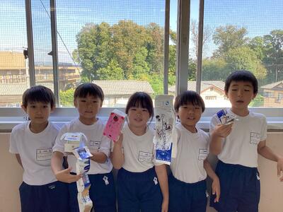1年生のために作ったおもちゃは,たくさんの時間をかけ,様々な工夫をしました。自信たっぷりのおもちゃを,実際に使ってもらうことができたこと,そして楽しんでもらえたことがとても嬉しそうでした。