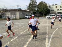 今日から,全校一斉での持久走練習が始まりました。低学年は,校庭の小トラックを4分間走り続けます。音楽が流れると,子供たちは「1周でも多く走ろう!!!」と懸命に走っていました。12月5日(火)の校内持久走大会に向けて,子供たちが達成感を得られるように励ましてまいります。お家でも朝の検温や持久走カードの記入等,ご協力よろしくお願いします。