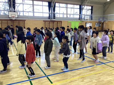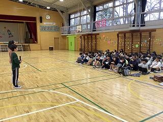 さよなら集会に向けて,体育館での学年練習がスタートしました。これまでお昼休みに練習を重ねてきた様々なジャンルのパフォーマンスが,初めて最初から最後まで繋がりました。