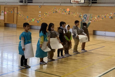 子供たちは恥ずかしがることなく,堂々と演技していました。2年生全員で6年生に感謝の気持ちを届けられるように,これからも練習を重ねていきます。
