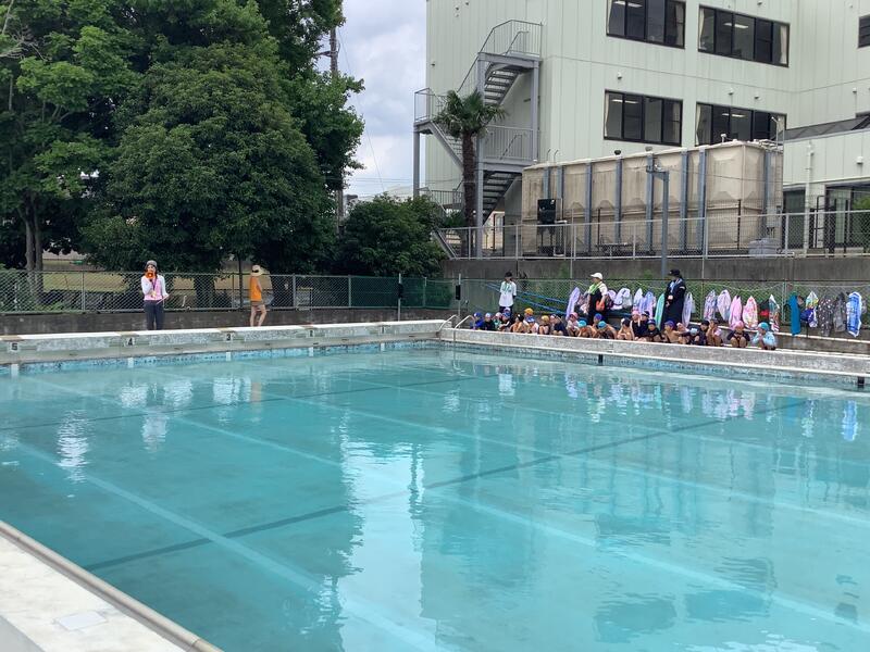 雨により2回中止となっていた水泳学習ですが、昨日晴天の下、無事に開始することができました。