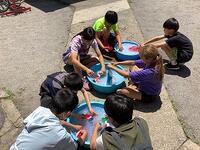 活動の終わりには「絵の具,楽しかった」「またやりたいな」「きれいに塗れてよかった」と嬉しそうに話していました。来週は絵の具を使って模様作りを行います。どんな作品ができあがるか楽しみです。