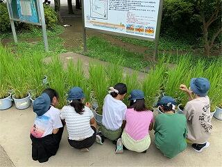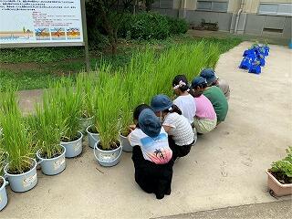 子供たちは、種もみから発芽させた稲が、あっという間に大きくなる様子に驚いていました。