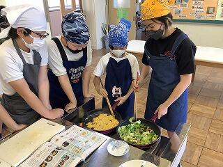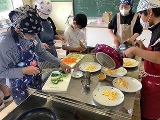 どのようにしたらおいしく仕上がるかを考え,切り方や炒め方を食材に合わせて調理することができました。二品で食材も多かったですが,上手に分担し,手際よく行うことができました。
