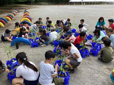 生活科でピーマン・ミニトマト・なすの中から好きな野菜を選び、植木鉢に苗を植えました。「おいしい野菜を育てたいな」「今日から一生懸命に育てるぞ」とやる気満々でした。なかには「どうすれば元気に育つのかな」「水はどのくらいあげるのかな」と疑問をもっている児童がいたので、本で調べておいしい野菜を育てられるようにしたいです。