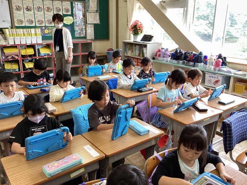 1年生にとっては,はじめてのタブレット端末を触る機会なので始まる前からワクワクした様子でしたが,