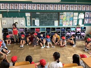 7月10日(水)に全校で「第1回いっしょにあそぼう」がありました。1年間に3回の活動を予定しており,今回は初回ということで自己紹介をしました。6年生は1年生と活動しますが,4月からお手伝いしていたこともあり,今回の活動を楽しみにする声が多かったです。各学級のリーダーも,6月からペア決めや進行の計画を責任もって行いました。