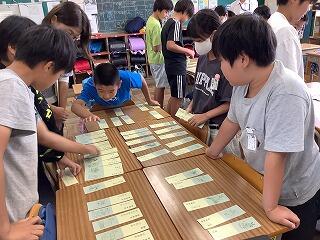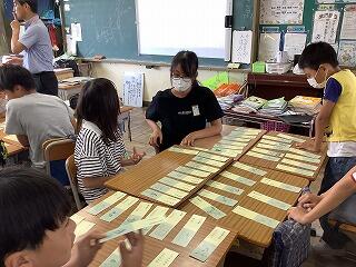 また7月17日には,千葉大学の松井聰教授をお招きして「いろはde歴史」の学習を行いました。歴史の重要用語を,時代の古い内容順にいろは歌に当てはめて詠んだもので,カルタを使って楽しく学習しました。