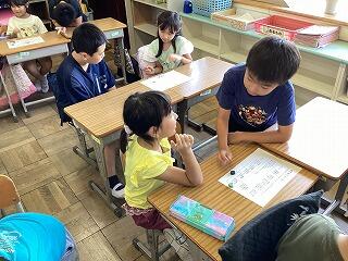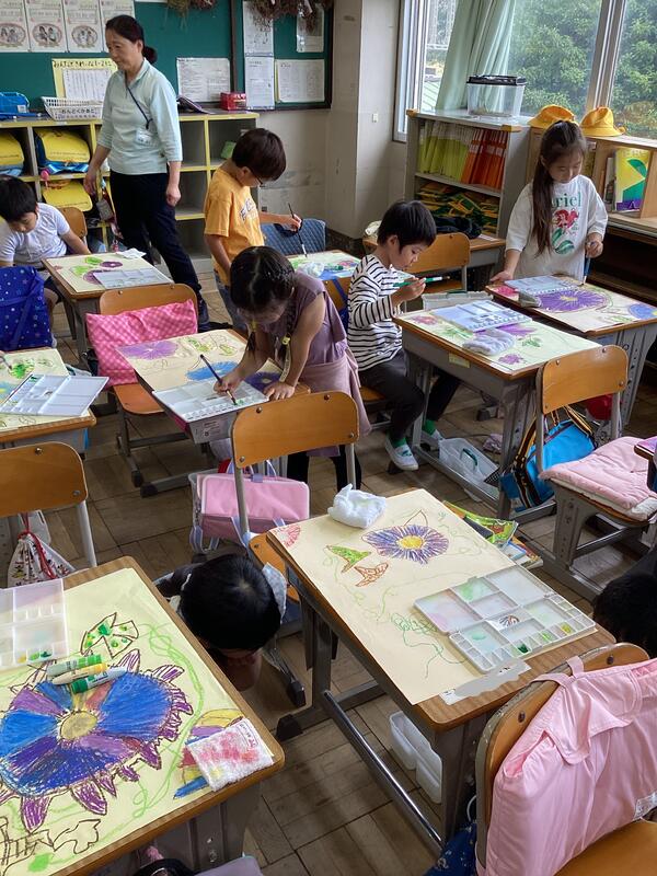 小学校に入学して初めての夏休みが終わり,子供たちの元気な声が教室に戻ってきました。「海とプールに行ったよ」「お家でゲームをしたよ」「花火を見たよ」「水族館に行ったよ」など,話したいことがあふれてくる様子でした。一生懸命に話す姿がとてもかわいかったです。