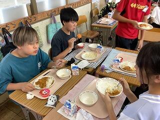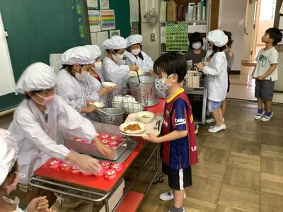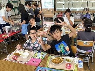 2学期最初の給食は,カレーライスでした。皆,おいしそうに食べていました。「お皿がピカピカになったよ」と笑顔でお皿を見せていました。