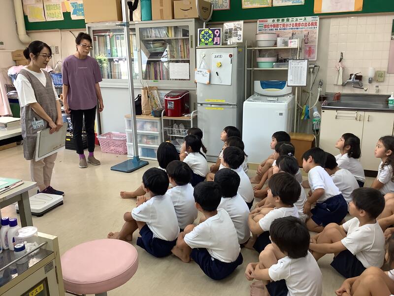 4日は,二学期の発育測定を行いました。発育測定の前には養護教諭の杉本先生から,健康的な便とトイレの使い方についてお話を聞きました。便から自分の体調を知ることができることを知り,「そうなんだ!」「今日から見てみよう!」という声が上がりました。発育測定では,4月からの自分の成長を感じている様子が見られました。