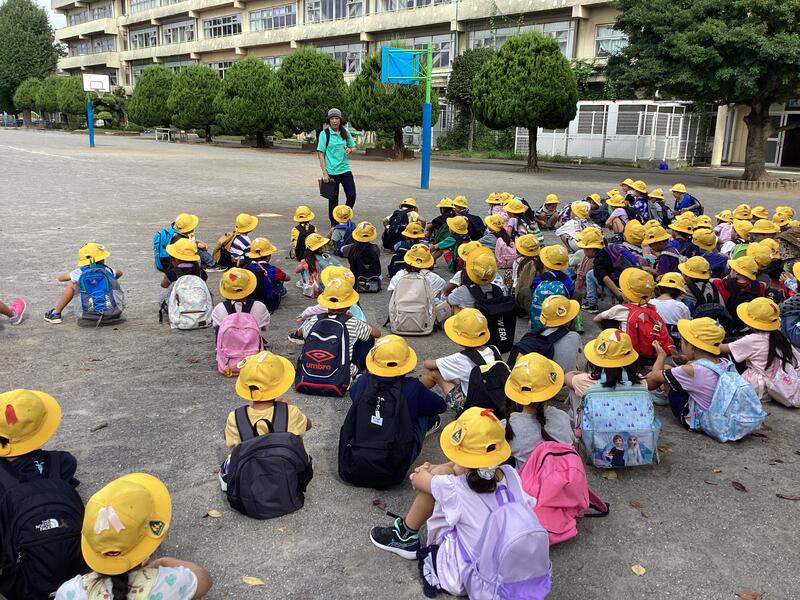 今日は,下田の杜に行ってきました。1学期にも行ったので,学校で行くのは2回目です。下田の杜までは細い道や車通りの多い道路もありますが,6月に行った時と比べて列を崩さずにまっすぐ歩いて行くことができました。