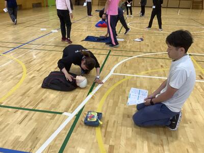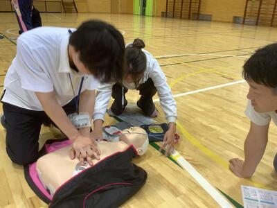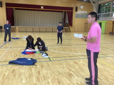 5月27日(火)の放課後に教職員研修を行いました。本日の研修テーマは、「救急救命講習」です。柏市学校教育課から訓練用のAEDトレーナーをお借りして、訓練を一人ひとり実施しました。胸骨圧迫やAEDの操作を実際に行いました。毎年この時期になると酒井根小学校では、AEDの使い方をはじめとする救急救命講習を実施しています。柏市内の小中学校は、AEDが設置されている柏市救急救命ステーションに指定されています。いざというときに、AEDを使用して救命活動ができるように、今回の研修を生かしていきたいです。