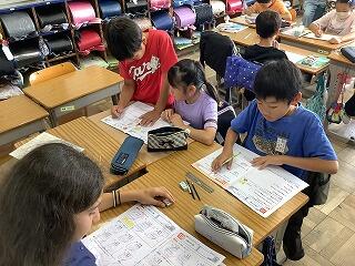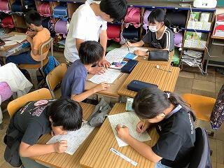 5月24日に運動会が無事に終わり、今週は国語で振り返りの作文を書きました。「はじめは緊張していたけれど、4年生の番になったら、緊張がなくなりました」「どの競技も心がワクワクドキドキしました」「今年は負けて悔しかったので、来年は勝ちたいです」など、皆、様々な思いを文章に表現しました。自分たちの競技も他学年の競技も楽しめたようです。