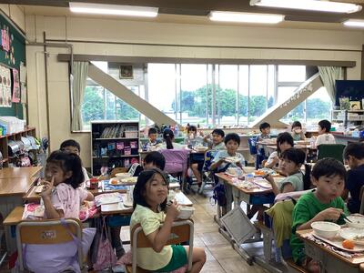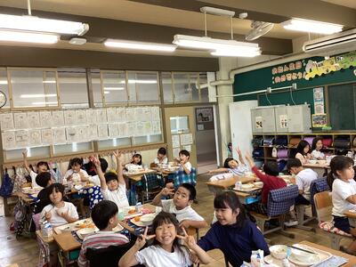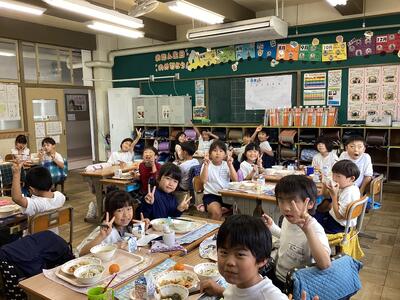 2年生は小学校に入学して以来,初めて班を作って給食を食べました。友達との会話を楽しむ姿を見て,私たちも嬉しくなります。