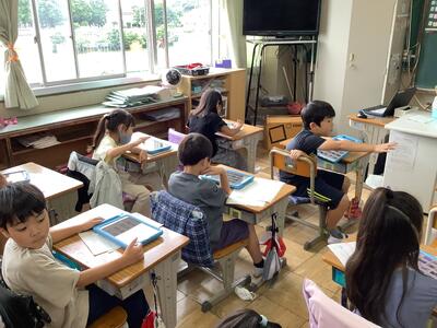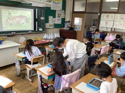 6月14日(水)にICT支援員の先生を招き,iPadを活用したスライド作りを行いました。2年生は,国語の学習で一人ひとりが考えた「生きものクイズ」のスライドを作成しています。タイトルの文字の色を変えたり,自分が調べた生きものの写真を見つけてスライドに入れたりして,どのお子さんも楽しく活動に取り組んでいました。スライドが完成したら,作品をスクリーンに映して「生きものクイズ」を出題します。どんな生きものが登場するか楽しみです。
