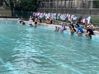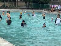 初めて学校のプールに入る児童も久しぶりに入る児童も、水泳の時間を楽しみにしていました。