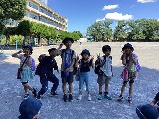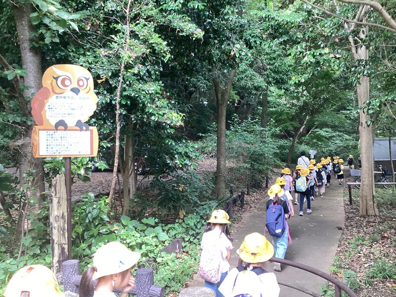今日は,下田の杜の探検に行きました。1年生にとって初めて校外に出ての活動だったので,出発する前からワクワクしている様子でした。