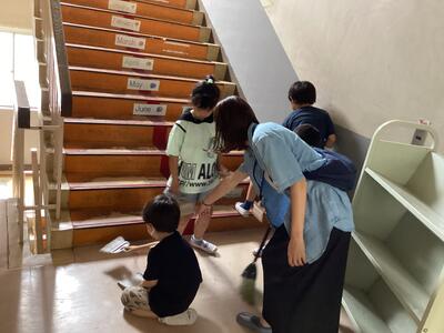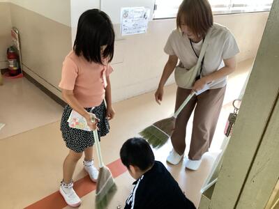 ほうきの使い方,雑巾のしぼり方,床の拭き方,ちりとりの使い方など,多くのことを覚えなければならないため,子供たちにとって,清掃活動は大変なことですが,皆,一生懸命に取り組んでいます。