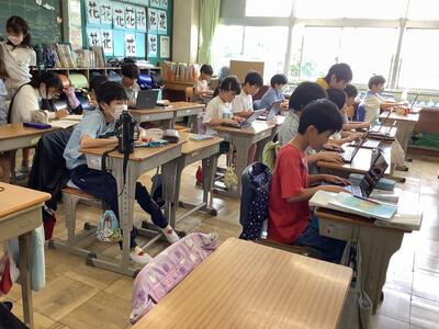 休み時間は,係の仕事・会社活動の仕事をしたり,友達と話をしたりと,充実した生活を送っています。自主的に,社会科の学習をしている子もいました。写真を撮ろうとすると,ポーズを決めてくれる子,恥ずかしがる子と様々で,写真を撮りにいくのも楽しみです。