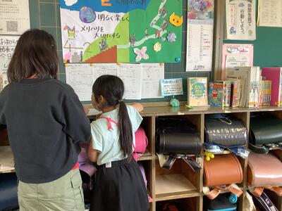 6月から,保護者の方に,1年生の清掃活動のお手伝いをしていただいています。教室,廊下,靴箱,机,ロッカーなど,様々な分担場所があるため,保護者の方にお手伝いいただき,大変ありがたく思っています。