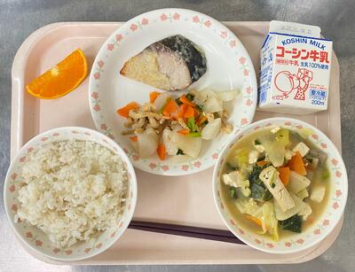 一覧へ ごはん、ぶりの塩こうじ焼き、かぶの酢の物、シャキシャキ!ピリ辛汁 日時 2026年03月10日(火) 公開対象 給食室 詳細 作成者 酒井根小学校 更新日時 2026-03-10 12:24:27