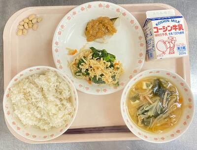 一覧へ ごはん、鱈のねぎ味噌焼き、切干大根のごま和え、ベーコンのみそ汁、炒り大豆 日時 2026年02月16日(月) 公開対象 給食室 詳細 作成者 酒井根小学校 更新日時 2026-02-17 07:31:50