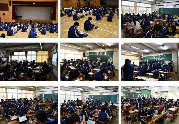 代表者発表では、各学年の代表生徒が全校生徒の前で堂々と発表する姿が立派でした。発表内容や発表の仕方、スライドの見やすさ、クイズを盛り込む等、参考になる点がたくさん見つかりました。