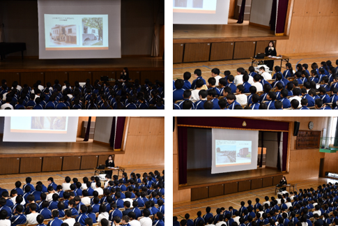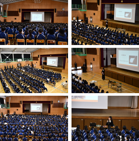 令和7年12月12日(金)杉原千畝さんのご子孫、杉原まどか様をお招きして講演会を実施しました。 「一人の決断が数千人の命を救った」という史実の裏にある、千畝さんの葛藤や家族の支えについてのお話に、生徒たちは真剣な眼差しで聞き入っていました。