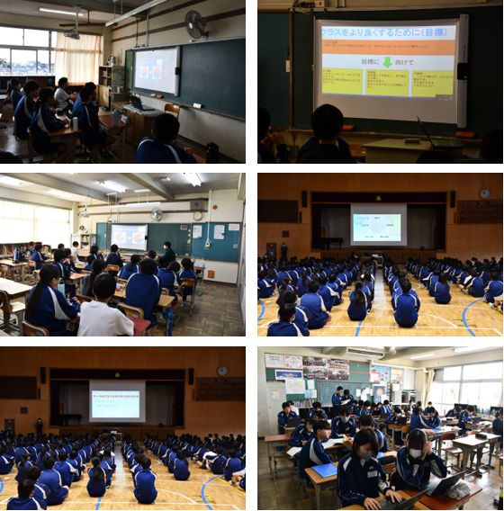 令和7年12月10日(水)6限、1学年は教室で学期の反省を行い、自身の成長と課題を見つめ直しました。2学年は金融教育を実施し、将来役立つお金に関する知識について学びを深めました。3学年は体育館で反省集会を開き、今学期の総括とともに、3学期に向けて学年全体の意識を統一しました。