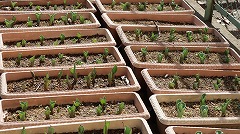 また、体育館ステージの飾りつけ用に、サクラソウとナノハナを育てています。