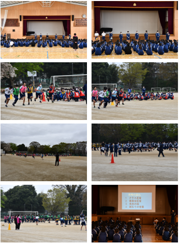 1学年は1限にグラウンドでレクを実施し、2限に体育館で集会を実施しました。