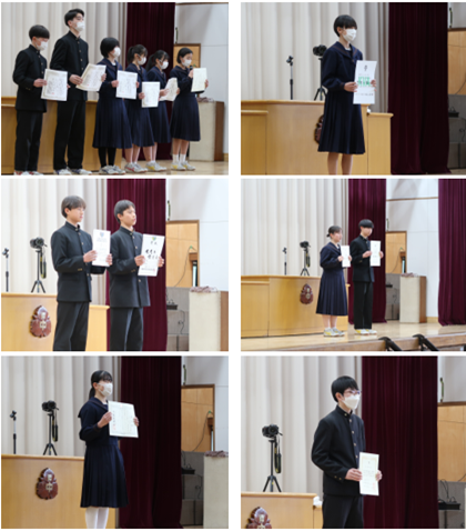 表彰集会では、代表生徒が堂々と全校生徒の前で戦績等を発表しました。