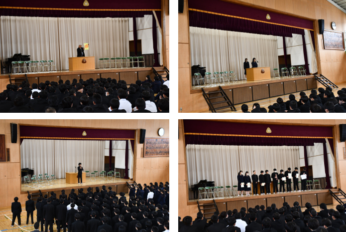 卒業式予行のあとには、表彰を実施しました。各代表生徒が3学期の活躍を全校生徒の前で発表する姿は大変立派でした。