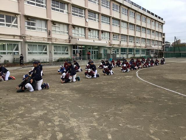 昨年度東京都大会3位の中学校との合同練習。酒井根の子もきびきびと元気よく練習することができました。お互いに刺激をもらいながら高めあうことができるのも部活動の良いところです。