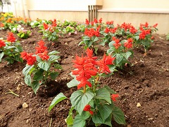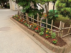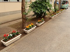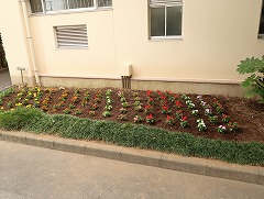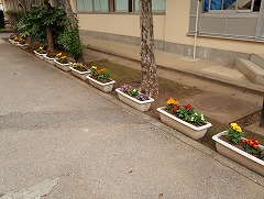 本校PTA厚生体育部さんが、花壇の植え替え作業をしてくださいました。