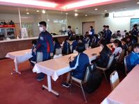 入館式を行いました。ホテルの方から館内での過ごし方などのお話がありました。