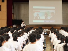 また、コロナ感染症拡大予防のため、体育館での全体会を取りやめ、各教室でリモートによる視聴に変更いたしました。