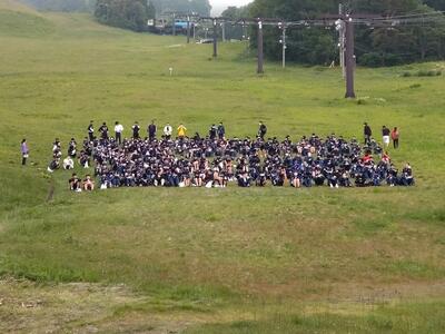 本日、体験学習の帰着時間が遅れてしまったことと、3日目を元気に過ごすために、学年レクの予定から、学年の集合写真の撮影に行程を切り替えました。