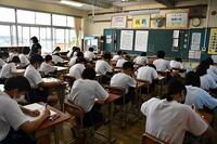 学校では、登下校時・運動部の部活動中・体育の授業ではマスクを外すように生徒に伝えています。各ご家庭でも、熱中症には十分にお気を付けください。