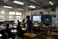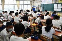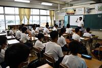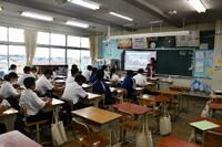 生徒は教室で、リモートにより講演を聴きました。「SNSの危険性」や「望ましい利用の仕方」について