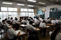 学校では、登下校時・運動部の部活動中・体育の授業ではマスクを外すように生徒に伝えています。各ご家庭でも、熱中症には十分にお気を付けください。