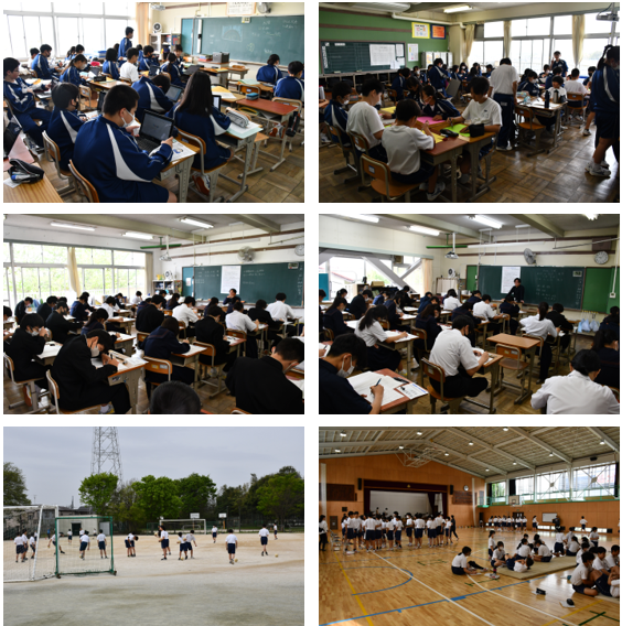 令和6年4月18日(木)3学年は全国学力・学習状況調査、全学年で時間をずらしながらスポーツテストを実施しました。学校教育目標の「文武両道」を目指して日々頑張っています。また、1学年はchromebookを配付しました。扱いに気を付けて、学力向上に役立ててほしいです。