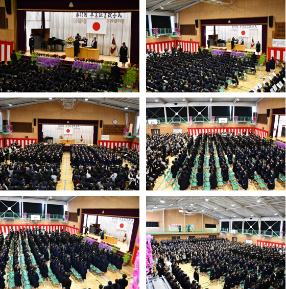 凛とした表情で入場した卒業生、一人ひとりに手渡された卒業証書には、3年間の学びと絆が詰まっていることと思います。たくさんの拍手に見送られ、住み慣れた学び舎を後にした卒業生たち、皆さんの歩む道が希望に満ちたものであることを、教職員一同、心より願っています。ご卒業おめでとうございます。
