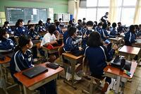 1年生はPCの配付を実施しました。3年間使いますので大切に扱ってほしいです。