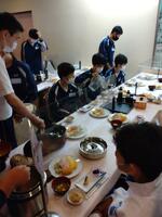 おはようございます、林間学校2日目となりました。本日は、クラスごとの体験活動と学年レクを実施予定です。参加生徒、全員元気に過ごしています。