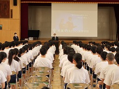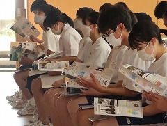 本日、近隣の私立高校の先生をお招きして、進路講演会を行いました。3年生はパンフレットを見て、メモをとりながら、真剣な表情で聞いていました。