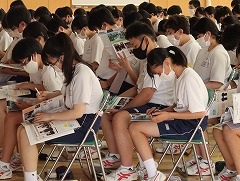 学校では、登下校時・運動部の部活動中・体育の授業ではマスクを外すように生徒に伝えています。各ご家庭でも、熱中症には十分にお気を付けください。
