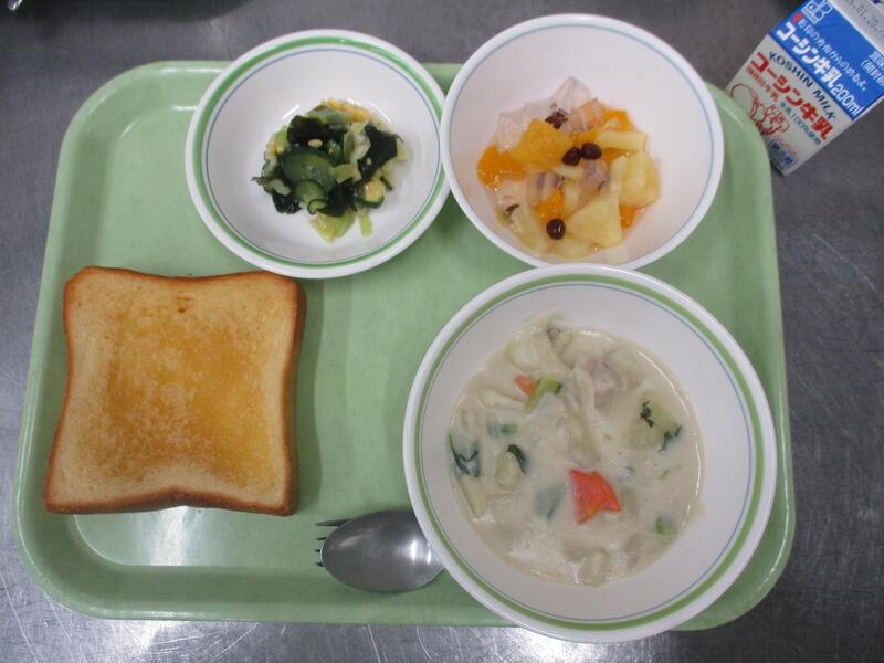 一覧へ はちみつレモントースト 日時 2026年01月09日(金) 公開対象 給食献立 詳細 牛乳 はちみつレモントースト じゃが芋のチーズソース煮 海草サラダ フルーツみつ豆 作成者 酒井根中学校 更新日時 2026-01-09 12:11:24