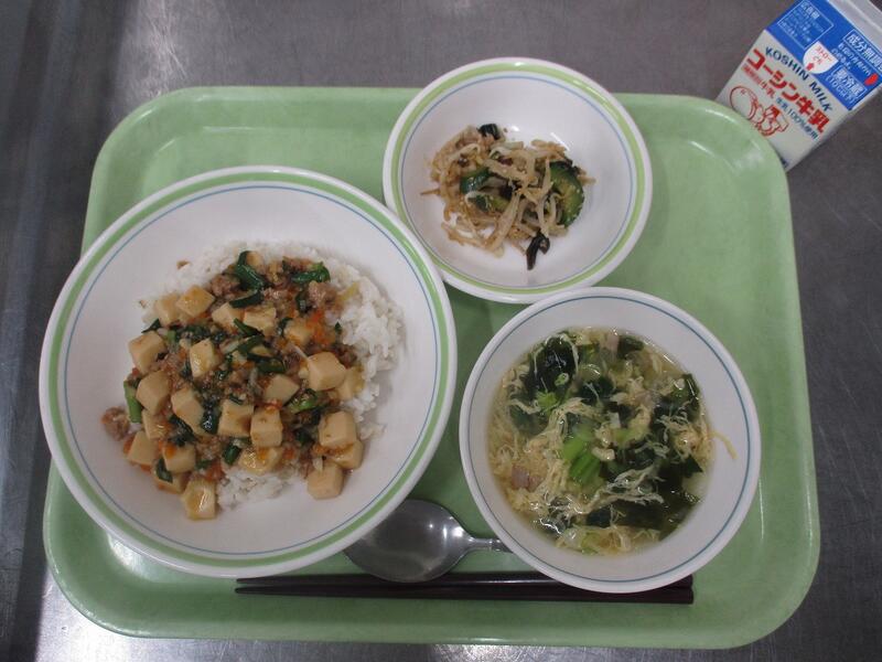 一覧へ マーボ豆腐丼 日時 2025年12月08日(月) 公開対象 給食献立 詳細 牛乳 マーボ豆腐丼 卵とわかめスープ 焼き豚ときくらげの中華和え 作成者 酒井根中学校 更新日時 2025-12-08 12:12:28